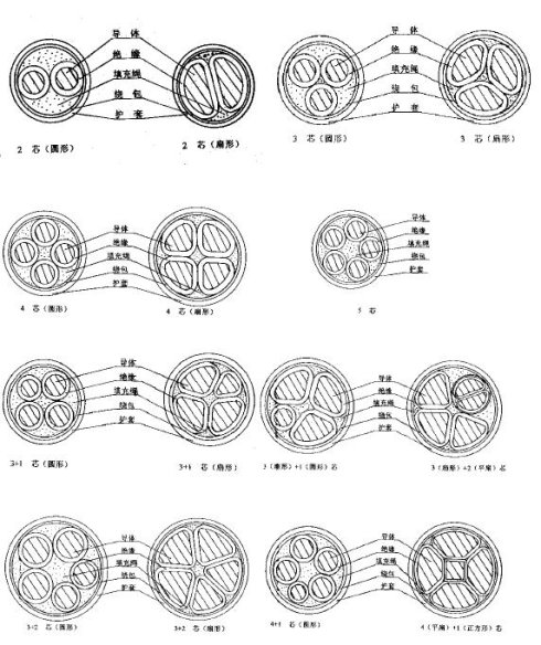b.由绝缘线芯数的几何形状,可将成缆分为:圆形线芯,扇形线芯,瓦形+方形,平扇+方形,扇形+圆形等绝缘线芯成缆。