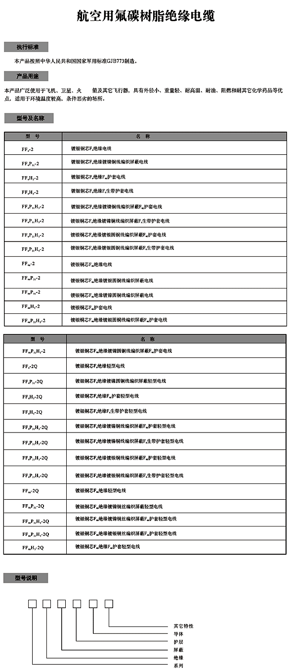 产品名称:航空用氟碳树脂绝缘电缆-高温导线