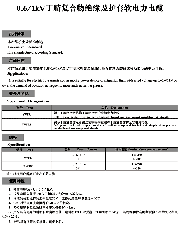 产品名称:丁腈软电力电缆