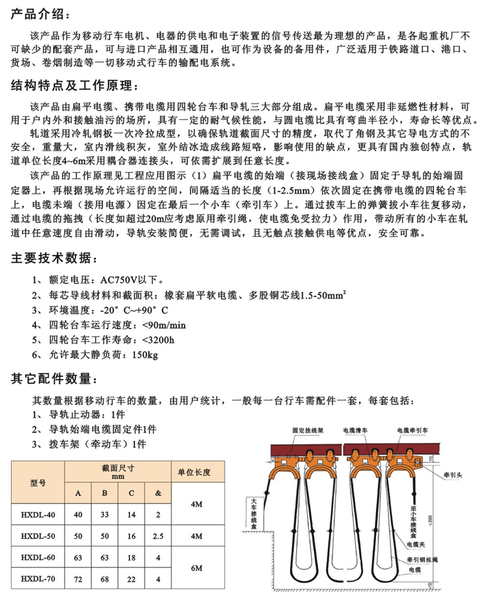 产品名称:HXDL电缆 滑线导轨电缆 橡套扁平电缆