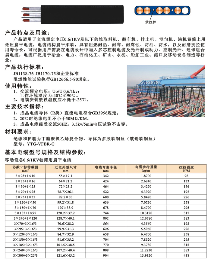 产品名称:YTG-VFBR-G扁电缆 动力扁形电缆 通讯组合扁电缆 通讯电缆