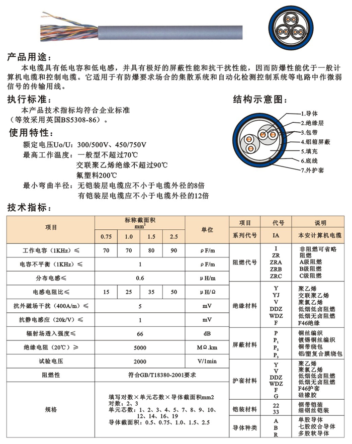 本质安全电缆 控制电缆 上缆控制电缆