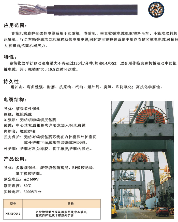 产品名称:橡胶电缆 卷筒机电缆 柔性电缆 抗扭曲电缆
