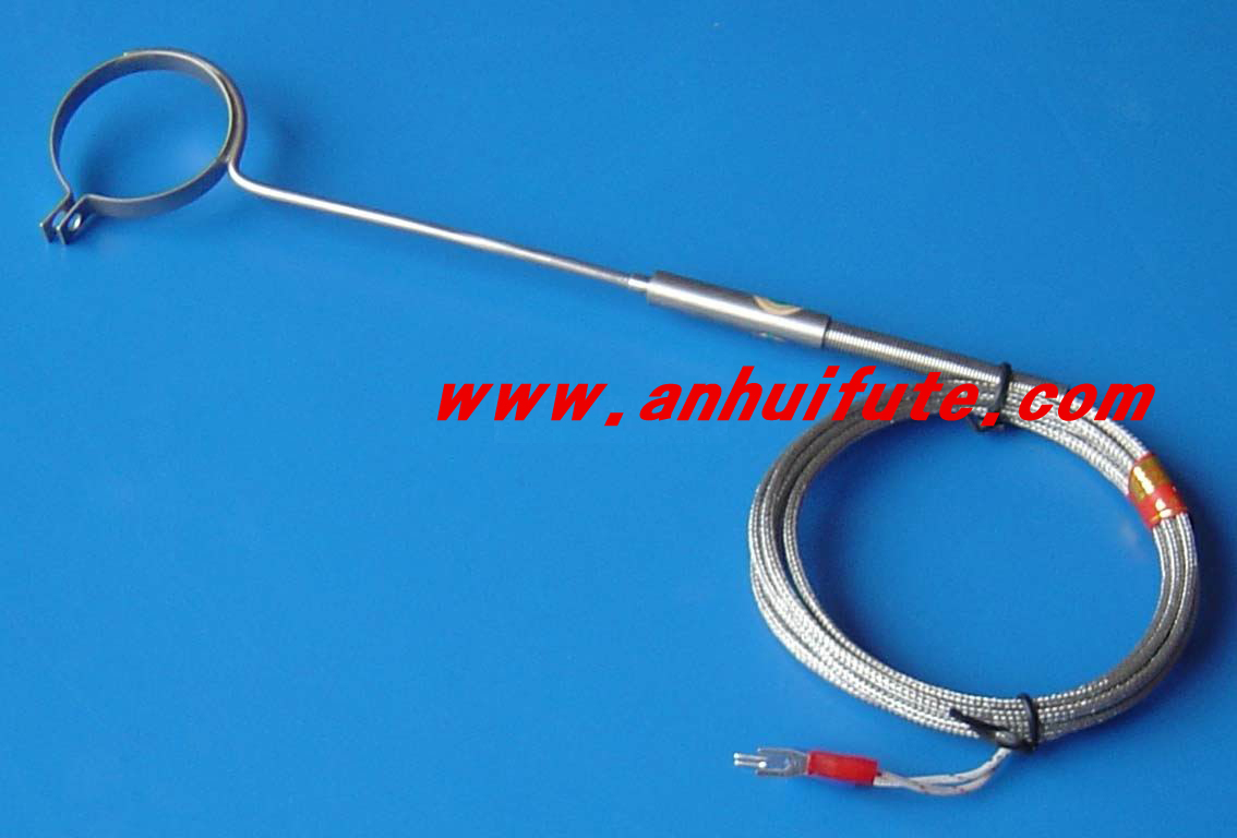 --抱箍式热电偶、热电阻是将测量端焊接在直径能收缩的抱箍上,然后安装在被测管道的外面,通过抱箍的集热就可测量管道表面温度。该产品安装方便、结构简单、热响应时间快、测量可靠且价格低廉。
