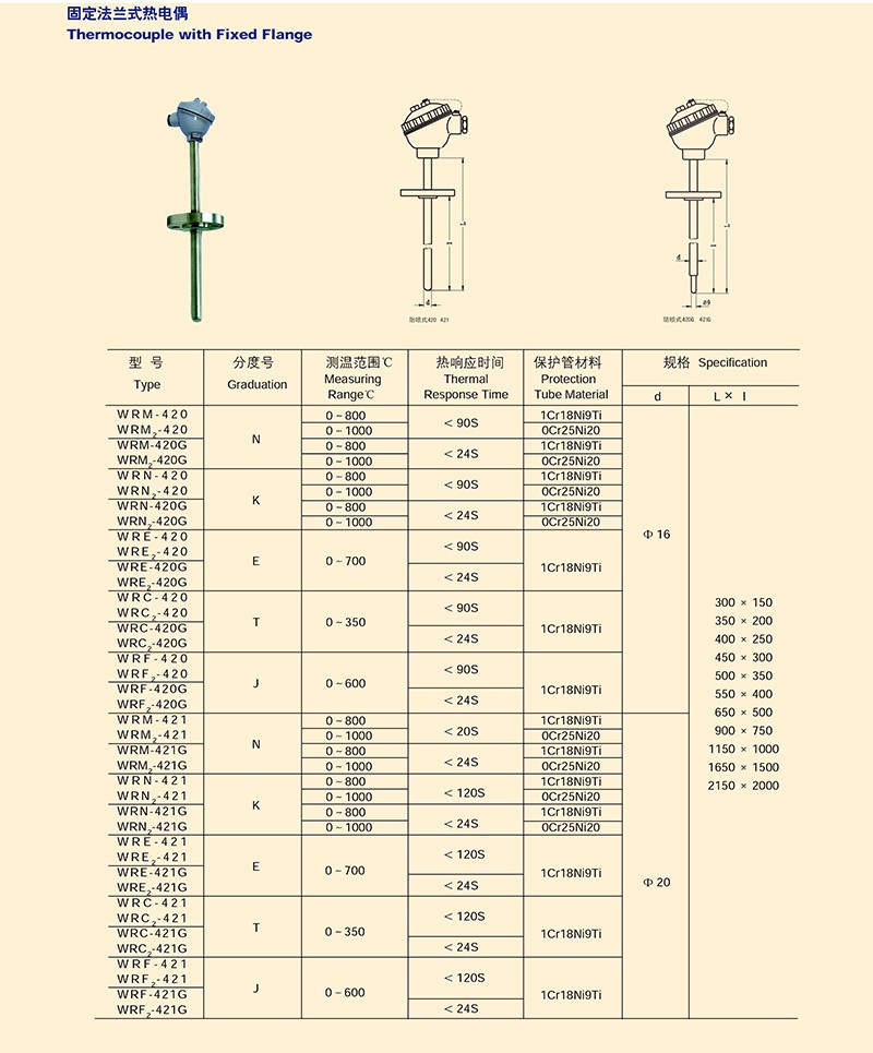 固定法兰式热电偶